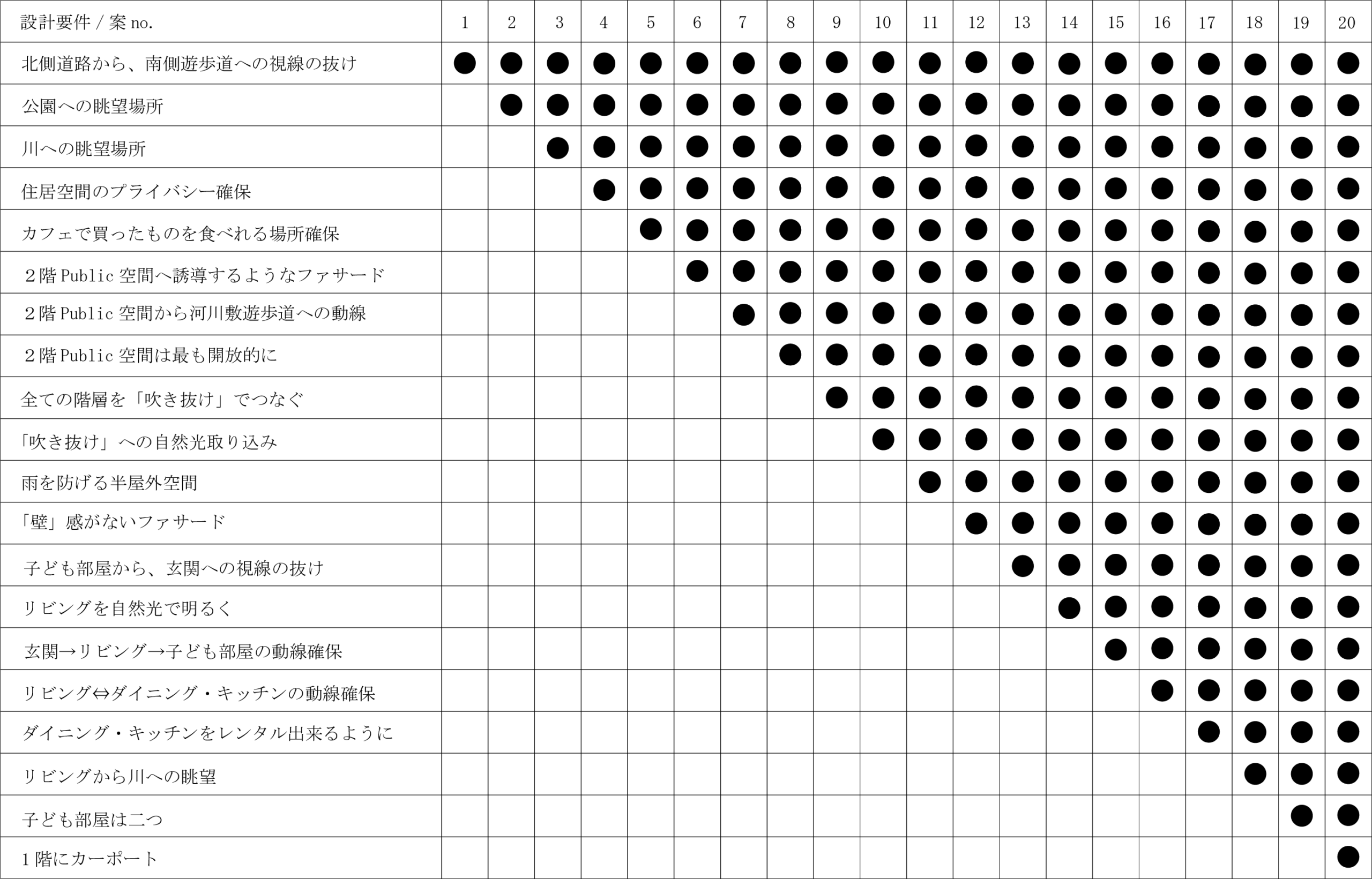 「設計要件表」を作成し、1つ1つの要件をクリアしていくようなプロセスで形をスタディした。